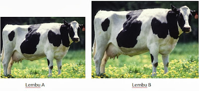2. Lembu A baka yang kecil berbanding Lembu B.